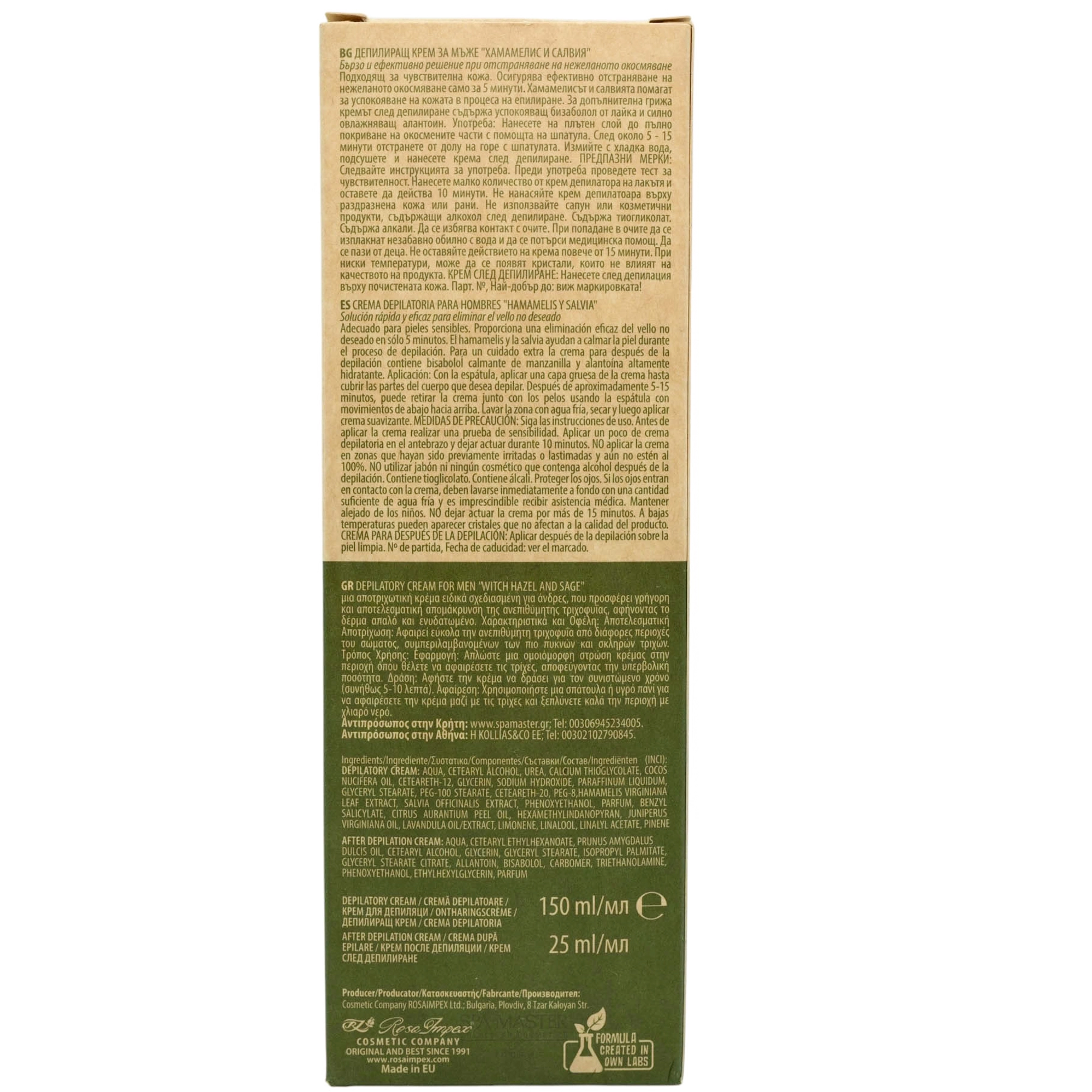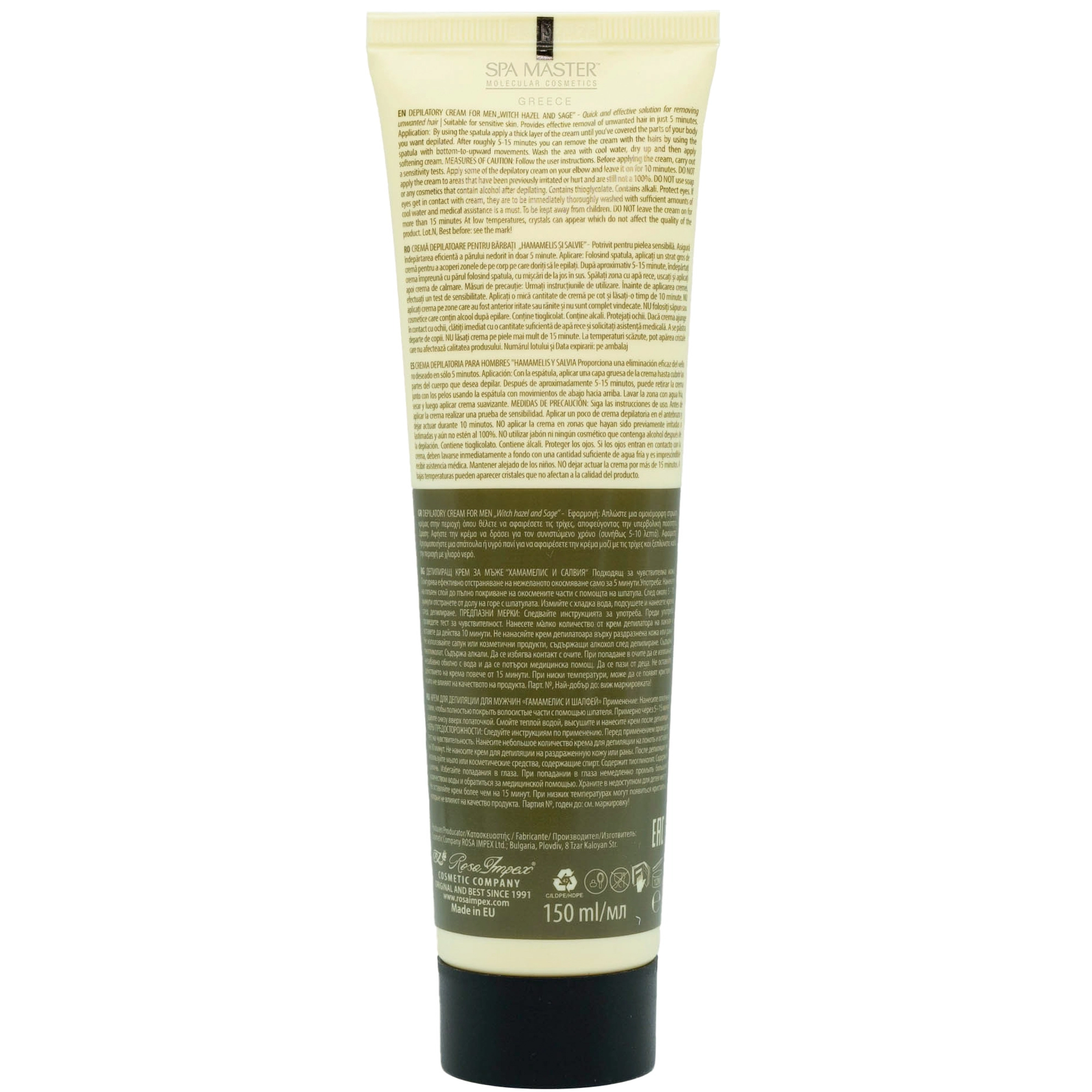 MEN’S MASTER Depilatory Cream for Men Witch Hazel and Sage 150ml – Αποτριχωτική Κρέμα Ανδρών με Αμαμελίδα & Φασκόμηλο