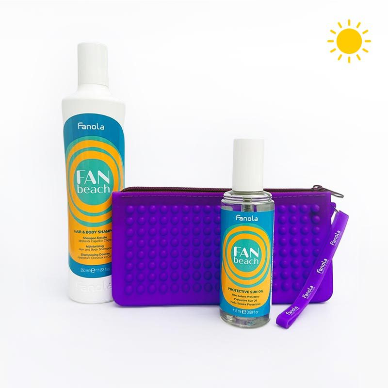 Το Fanola Fan Beach Hair Sunscreen Set είναι το απόλυτο καλοκαιρινό σετ προστασίας και φροντίδας μαλλιών, ιδανικό για διακοπές, παραλία και καθημερινή έκθεση στον ήλιο. Ένα ολοκληρωμένο kit που προστατεύει τα μαλλιά και το τριχωτό από τις βλαβερές ακτίνες UV, ενώ παράλληλα προσφέρει ενυδάτωση, απαλότητα και αίσθηση φρεσκάδας.