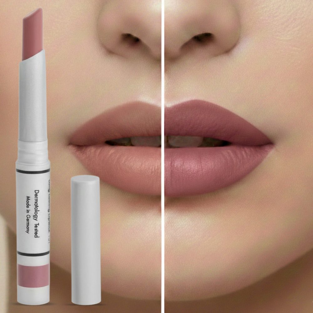 Βαθύ δαμασκηνί ματ αποτέλεσμα με διάρκεια και όγκο για λεία και ενυδατωμένα χείλη.