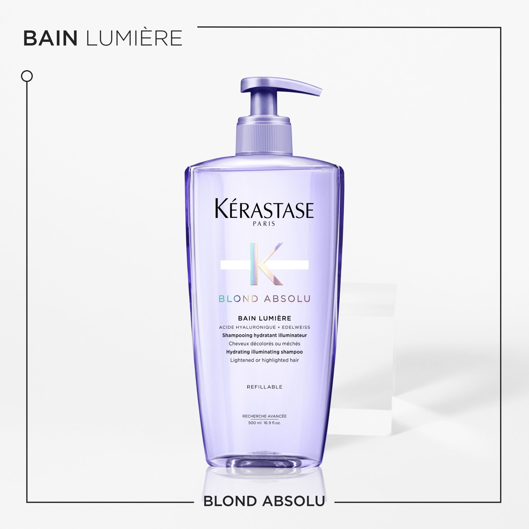Το Kérastase Blond Absolu Bain Lumière είναι ένα ενυδατικό σαμπουάν χωρίς θειικά άλατα, ειδικά σχεδιασμένο για ευαισθητοποιημένα, ξανοιγμένα και βαμμένα ξανθά μαλλιά. Καθαρίζει απαλά, απομακρύνει τους ρύπους, χαρίζοντας ανάλαφρη ενυδάτωση, λάμψη και ζωντάνια.