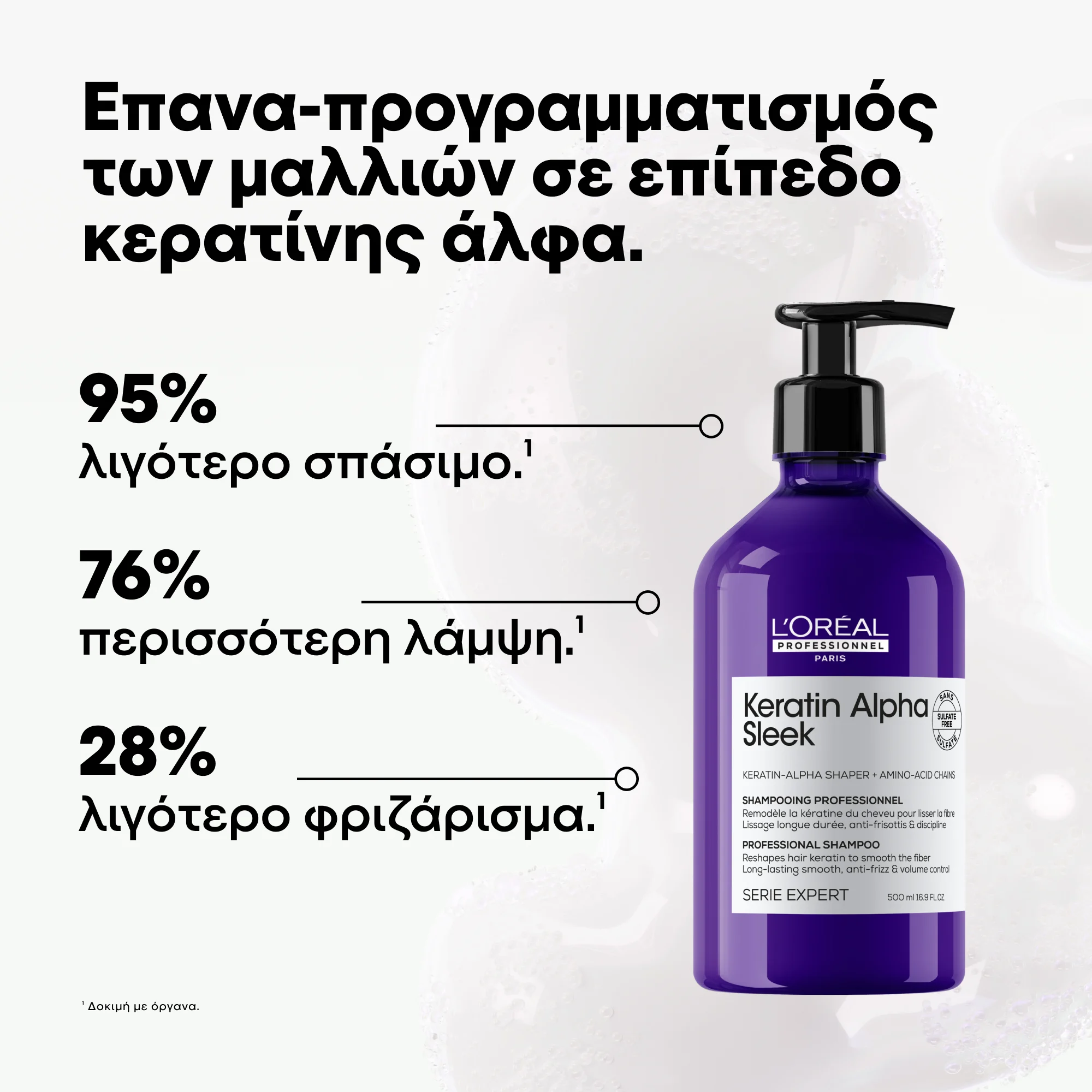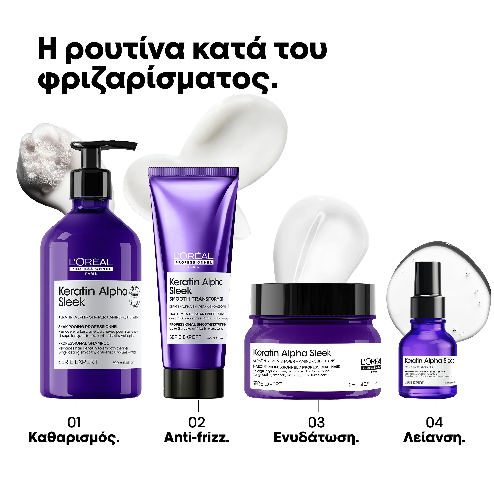 Για καλύτερα αποτελέσματα, συνδυάστε το με τα υπόλοιπα προϊόντα της σειράς Keratin Alpha Sleek.