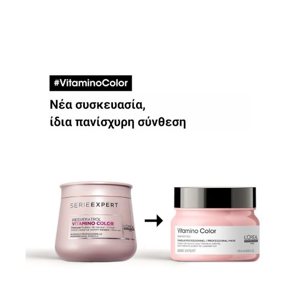 Η L’Oréal Professionnel Serie Expert Vitamino Color Μάσκα αποτελεί την ιδανική καθημερινή φροντίδα για τη διατήρηση της ζωντάνιας, της απαλότητας και της έντασης του χρώματος, όπως ακριβώς την πρώτη μέρα μετά τη βαφή.