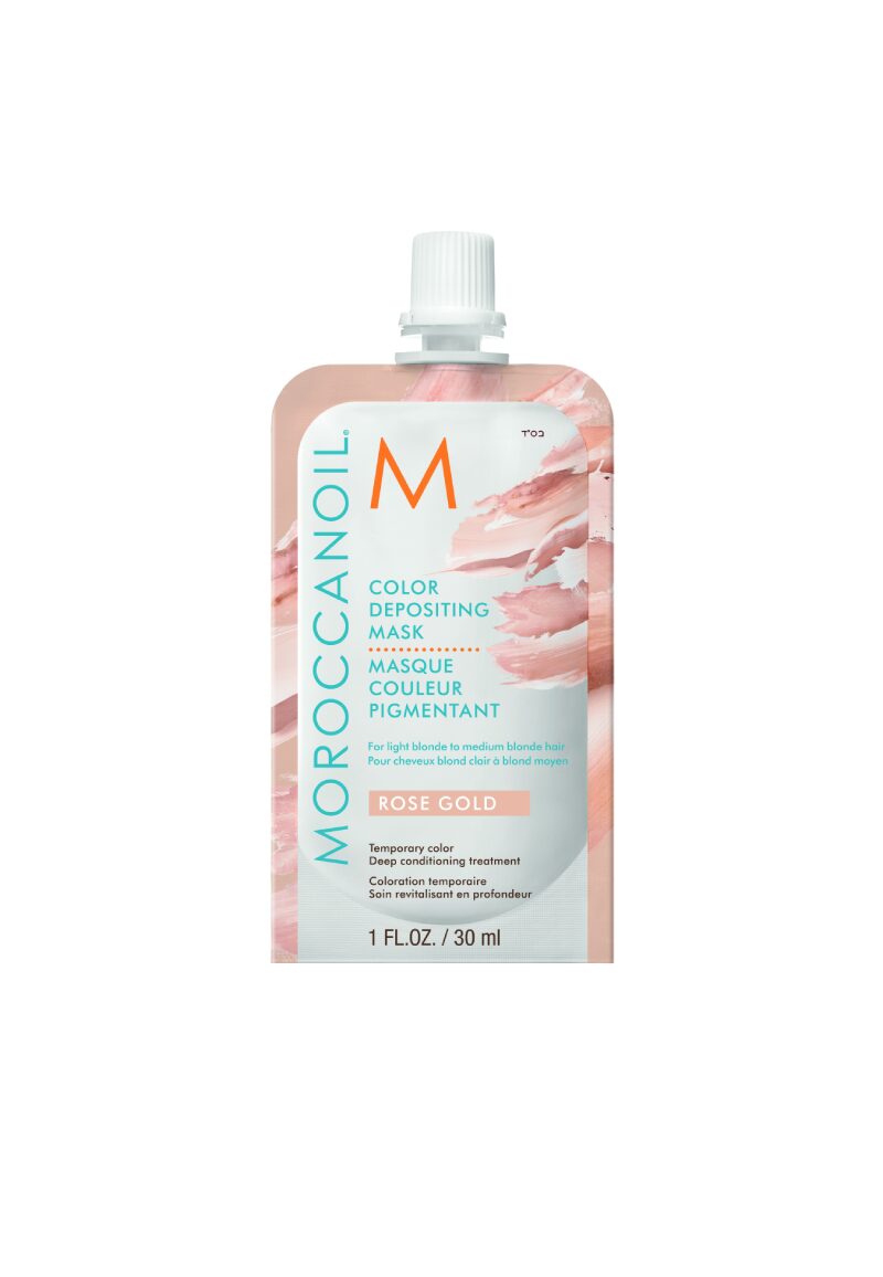 Η Moroccanoil Color Depositing Mask Rose Gold 30ml προσφέρει την ιδανική λύση για fashion αλλαγές. Επιπλέον, οι ημιμόνιμες χρωστικές χαρίζουν απαλούς ροζ και χρυσούς τόνους. Έτσι, το χρώμα ανανεώνεται άμεσα, ενώ ταυτόχρονα το έλαιο Argan προσφέρει βαθιά περιποίηση, γεγονός που εξασφαλίζει εντυπωσιακή λάμψη και απαλότητα στα ανοιχτόχρωμα μαλλιά σας.