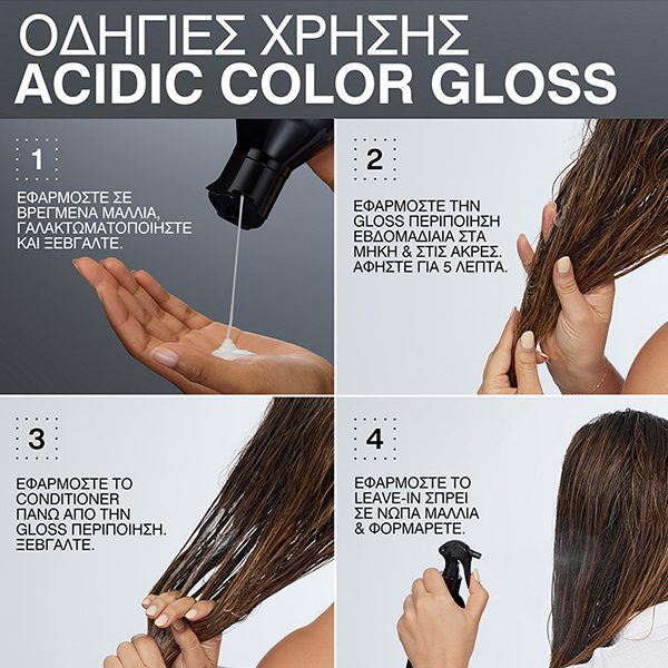 4. Συνεχίστε με το Acidic Color Gloss Conditioner για μέγιστο αποτέλεσμα.