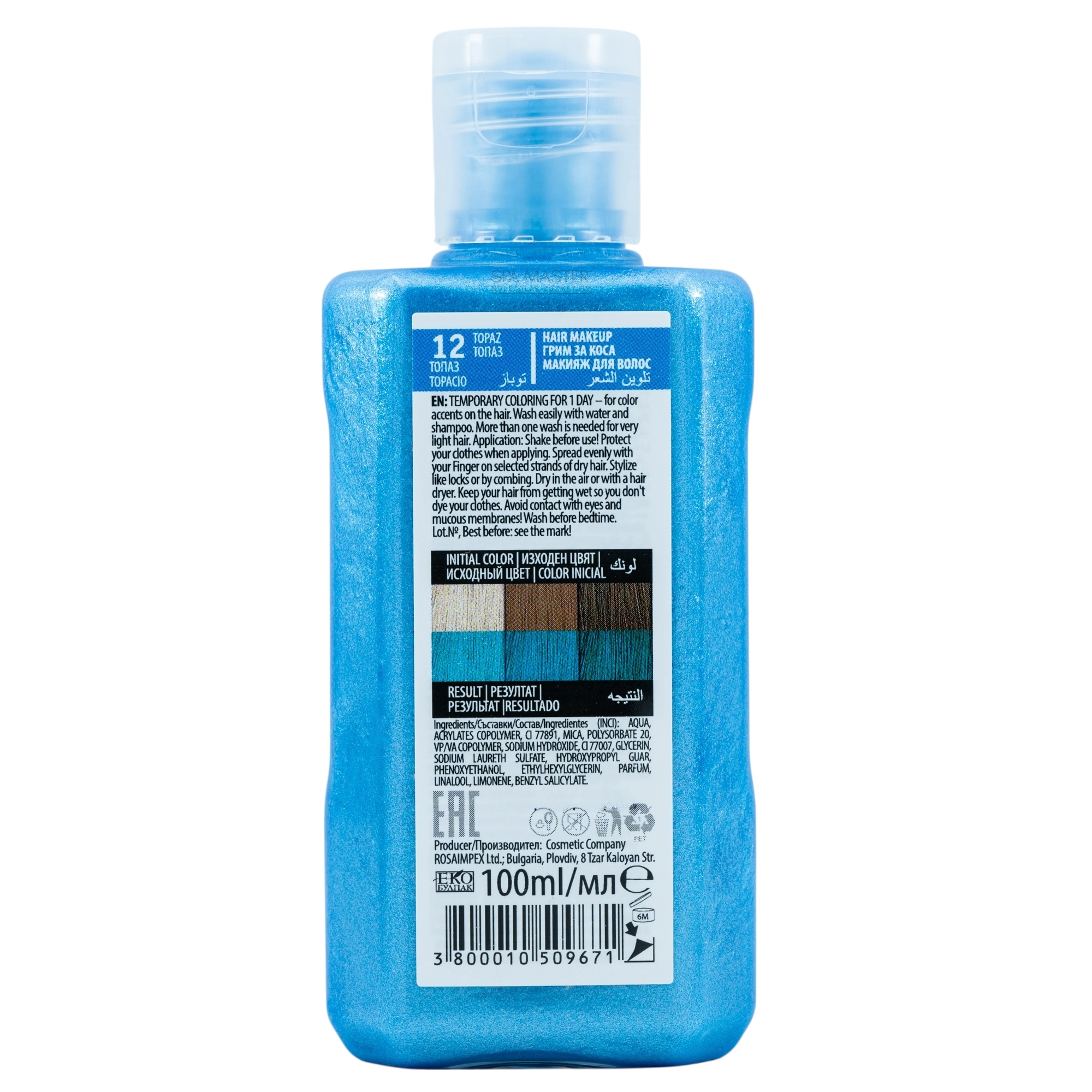 Ψυχρό τοπάζ-γαλάζιο μεταλλικό εφέ για high-fashion looks και icy λεπτομέρειες. Προσφέρει κομψή λάμψη με απόλυτα προσωρινό αποτέλεσμα. Απομακρύνεται με ένα λούσιμο.